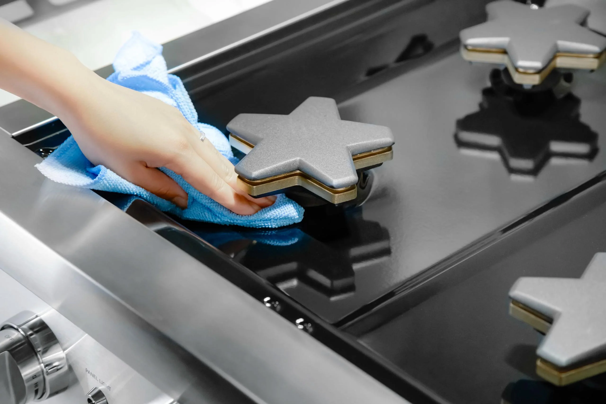 The patented Pedestal Star Burners deliver superior power and even heat distribution with 18,000 BTUs across the front of the rangetop. The QuickClean Base allows easy access under the burner for effortless cleaning. Equipped with a non-stick cast-aluminum griddle provides cooking flexibility and is removable for easy cleanup. Sleek LED Downlighting is hidden descretely above the control panel and provides functional stylish illumination. The 2 ExtraLow Simmer burners are perfect for simmering or holding foods and melting chocolate without scorching or burning. This 36-inch Thermador range top has a bold design with stylish metal knobs and a porcelain surface to create a Professional-looking kitchen setup.